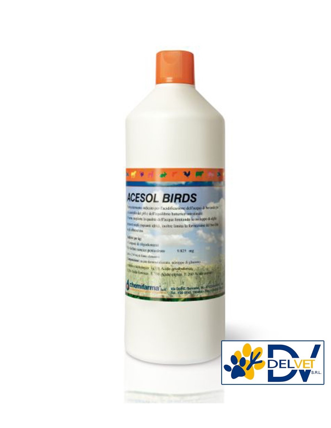 Chemifarma - ACESOL BIRDS LIQ.1 LT è un acidificante per il controllo del PH dell’acqua e la prevenzione di malattie batteriche, quali: coccidiosi, samonellosi, micosi, colibacillosi e clostridiosi