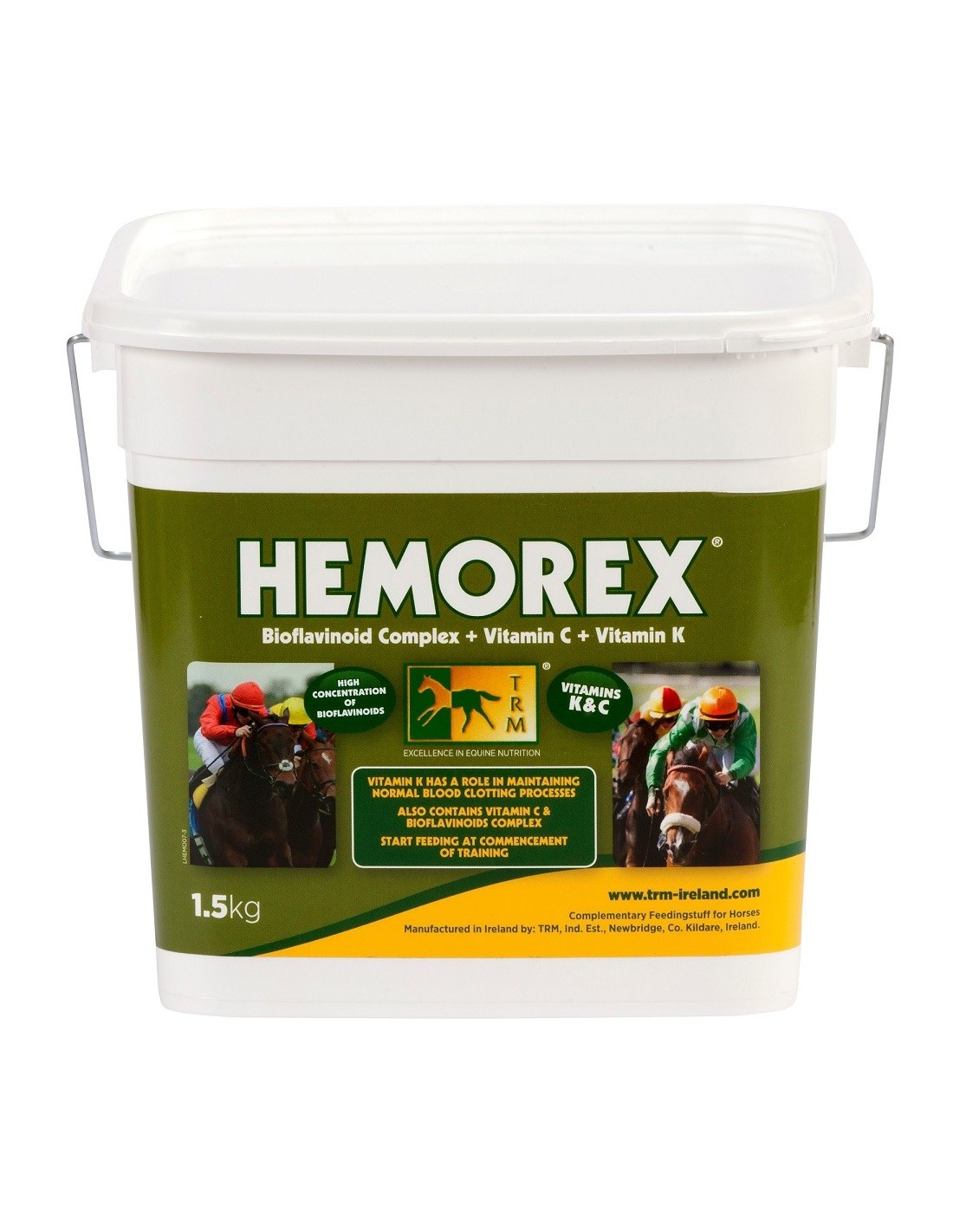 HEMOREX è un mangime complementare con Vitamina K che ha il ruolo di mantenere i normali processi di coagulazione del sangue, Vitamina C, Bioflavinoidi che migliorano l’assorbimento e l’utilizzo della Vitamina C.