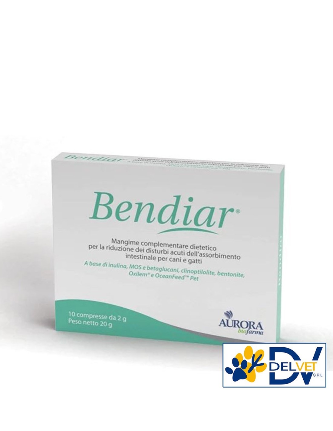 Aurora Biofarma - BENDIAR 10 COMPRESSE 2 GR è un mangime complementare dietetico per la riduzione dei disturbi acuti dell’assorbimento intestinale per cani e gatti, utile durante le diarree acute e i periodi di convalescenza successivi.
