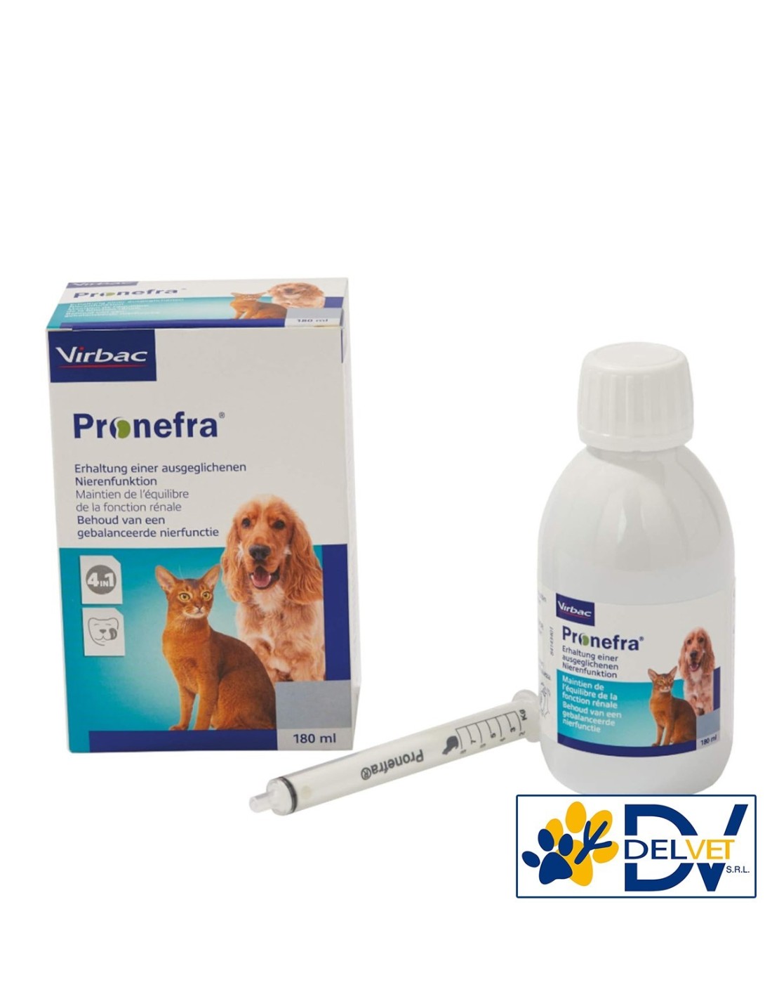 Virbac - PRONEFRA 180 ML è indicato per mantenere l’equilibrio della funzione renale nei cani e nei gatti.