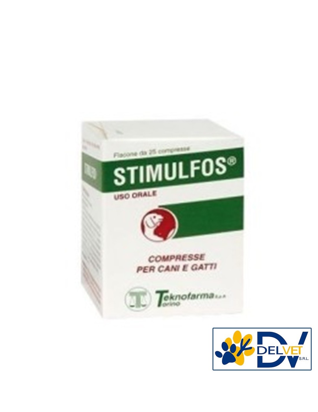 Teknofarma - STIMULFOS 25 COMPRESSE cani e gatti è un integratore alimentare in compresse indicato per il supporto degli stati di carenza vitaminica dovuta ad anemia,stress e inteso lavoro muscolare.