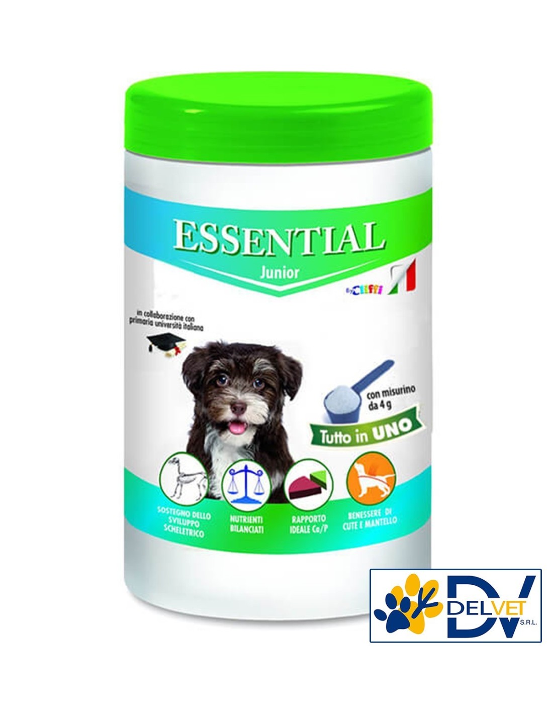 ESSENTIAL CANE JUNIOR 650 GR è l’alimento complementare, essenziale per l’integrazione della dieta casalinga, a eliminazione, o BARF senza ossa del cane cucciolo. La presenza dei macroelementi minerali (calcio, fosforo, magnesio, cloro, sodio e potassio), degli oligoelementi minerali (zinco, ferro, rame, manganese, selenio e iodio) e di tutte le vitamine è stata attentamente ponderata tenendo conto delle carenze tipiche delle diete casalinghe tradizionali. L’elevato apporto di nutrienti antiossidanti (vitamine E e C) contribuisce alla buona funzionalità del sistema immunitario. Il corretto bilanciamento di calcio, fosforo e vitamina D garantisce il corretto sviluppo scheletrico degli animali in accrescimento, evitandone sia la carenza (predisponente al rachitismo) sia un possibile eccesso (potenzialmente negativo per lo sviluppo scheletrico, in particolare nei cani di taglia grande e gigante). ESSENTIAL Cane Junior è a ridotto potere allergizzante, poiché non contiene fonti proteiche. Tutti gli integratori ESSENTIAL sono stati formulati in collaborazione con docenti di nutrizione del cane e del gatto presso primarie università italiane.