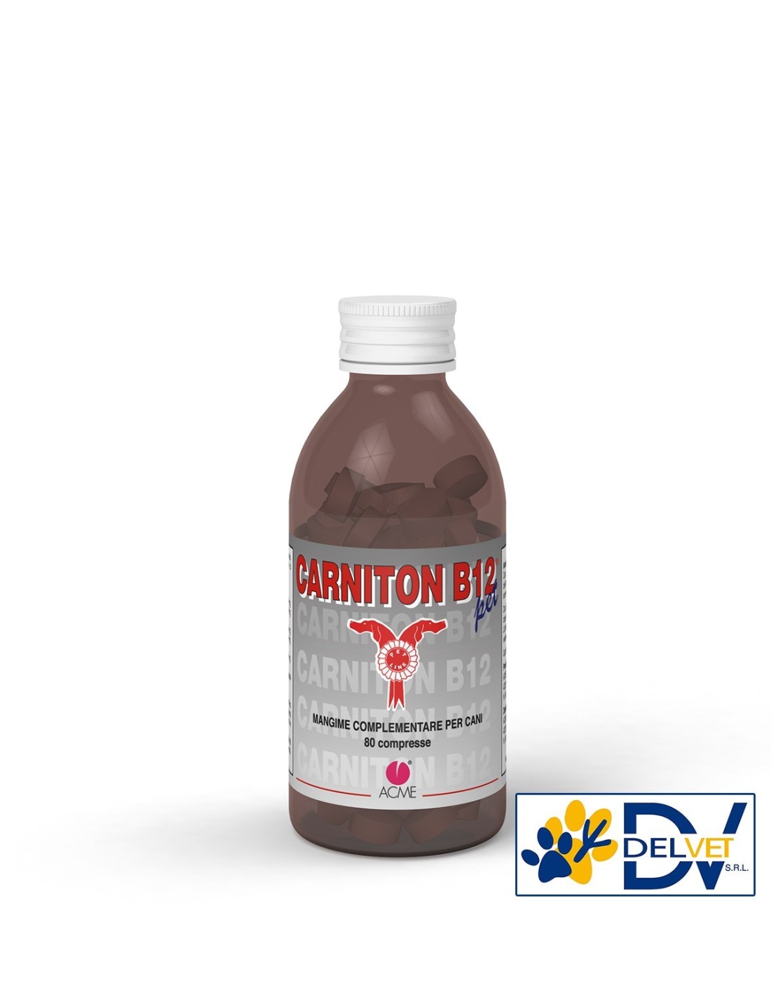 ACME - CARNITON B12 CANI 80 CPR è caratterizzato da un’esclusiva associazione di: L-CARNITINA: All’interno del nostro corpo la carnitina si trova concentrata soprattutto a livello muscolare e cardiaco (circa il 95-98%) e in quantità minore in alcuni organi come il fegato e i reni. Il suo ruolo principale è quello di aumentare la produzione di energia a livello muscolare promuovendo l’entrata degli acidi grassi nel mitocondrio. A differenza della forma racemica la Carnitina levogira (L-Carnitina) è l’unica ad essere completamente metabolizzabile raddoppiando l’effi cacia dell’integrazione. Al contrario la DL-Carnitina contiene almeno il 50% di forma racemica e questa, non solo non è utilizzabile, ma compete con l’assorbimento della forma levogira. VIT B12: favorisce l’eritropoiesi, ha effetti positivi sul sistema nervoso ed esplica un effetto appetitogeno. L-LISINA, L-ARGININA: aminoacidi che favoriscono l’anabolismo proteico.