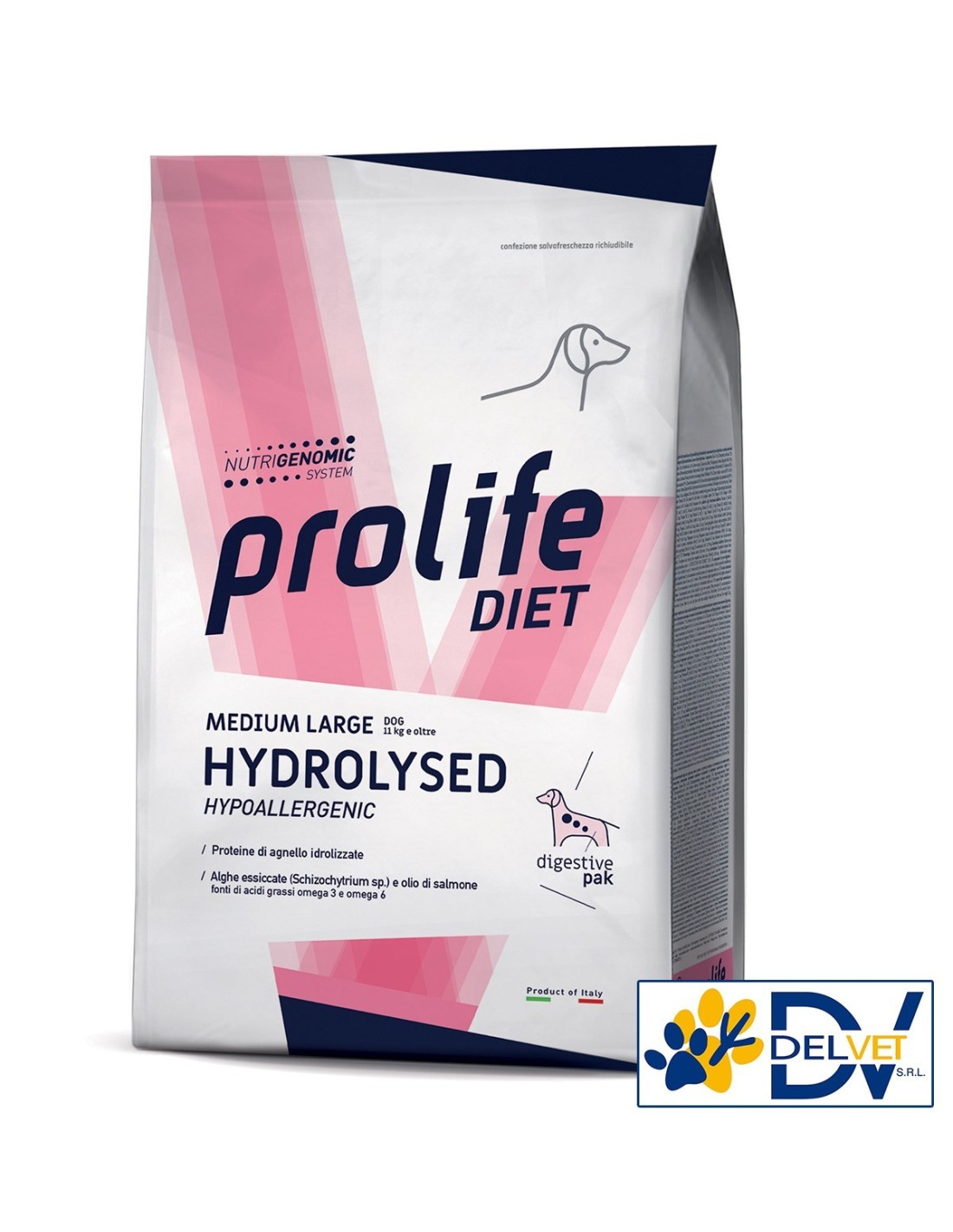 PROLIFE HYDROLYSED MEDIUM/LARGE CANE 2 KG è un alimento completo dietetico per il cane adulto di taglia media e grande formulato per la riduzione di intolleranze a ingredienti e sostanze nutritive.