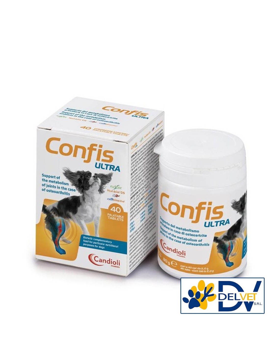 Candioli - CONFIS ULTRA barattolo 40 CPR è un mangime complementare dietetico per cani, formulato per il supporto del metabolismo articolare in caso di osteoartrite.
