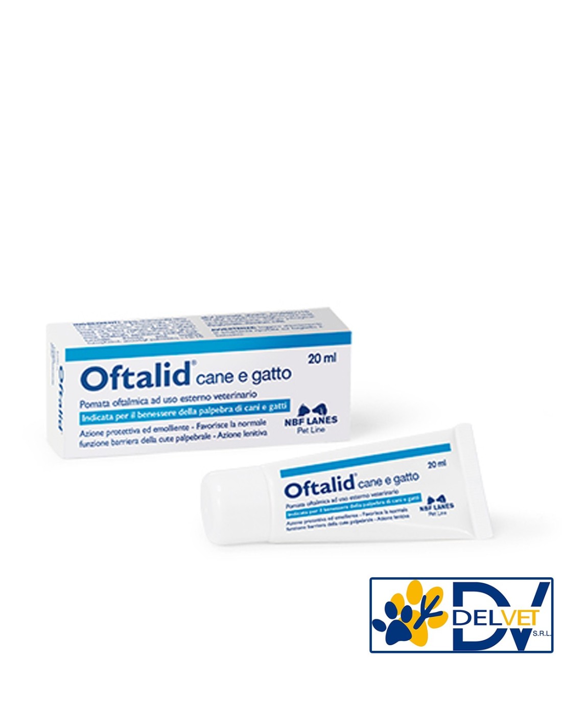 NBF Lanes - OFTALID POMATA OFTALMICA 20 ML è una pomata oftalmica, emolliente, idra- tante, studiata alla luce delle più moderne conoscenze scientifiche per lenire e proteggere le strutture palpebrali di cani e gatti. Inoltre, la mancanza di effetti irritanti e la facilità d’uso rendono Oftalid un utile adiuvante da affiancare alla terapia topica e sistemica in caso di blefarite.