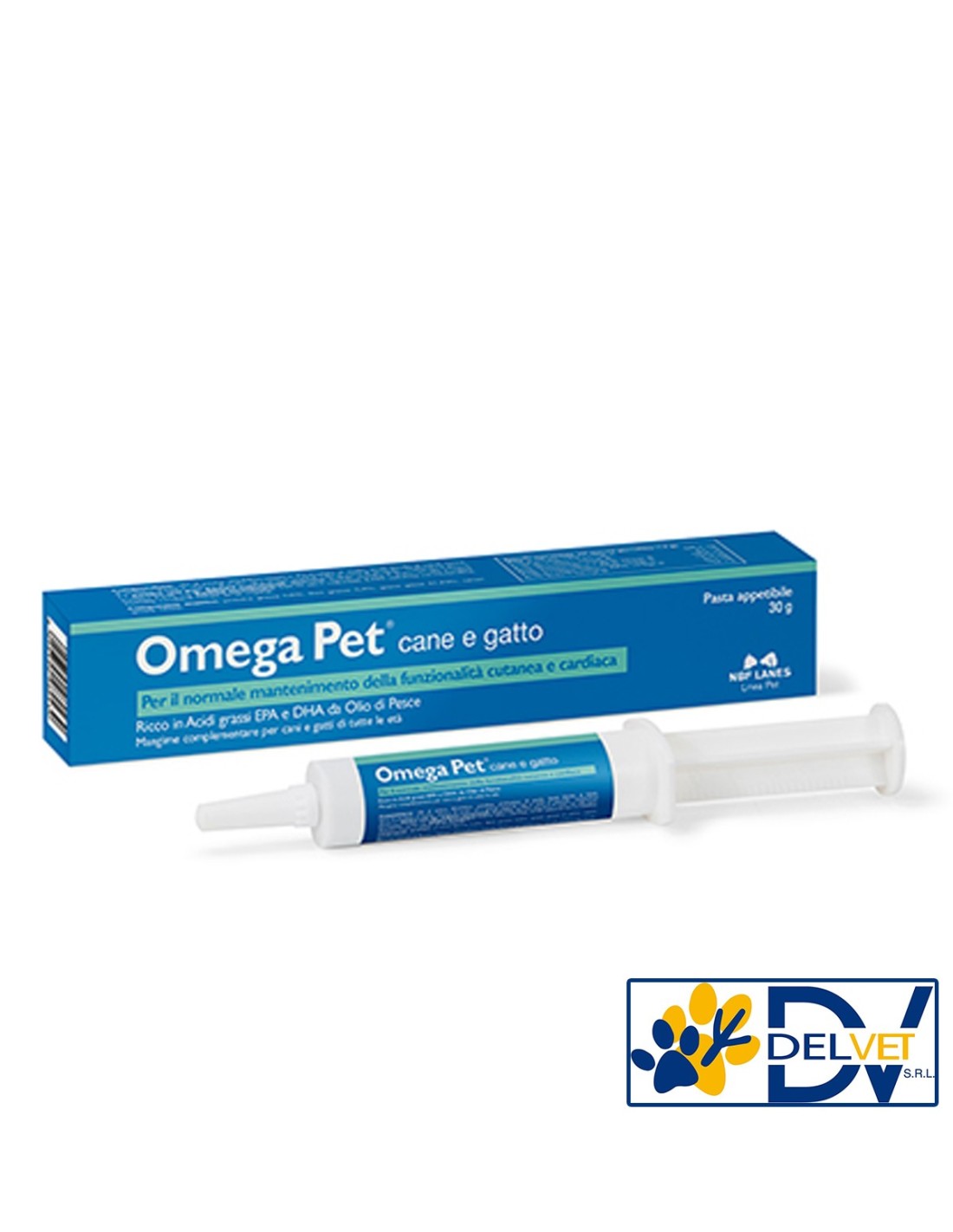 NBF Lanes - OMEGA PET PASTA 30 GR è un mangime complementare per cani e gatti ad alto contenuto di Acidi Grassi Polinsaturi (PUFA), Omega 3 da olio di pesce e Vitamina E. In caso di aumento del fabbisogno di EPA e DHA per alterazioni a livello cutaneo, renale e cardiaco.