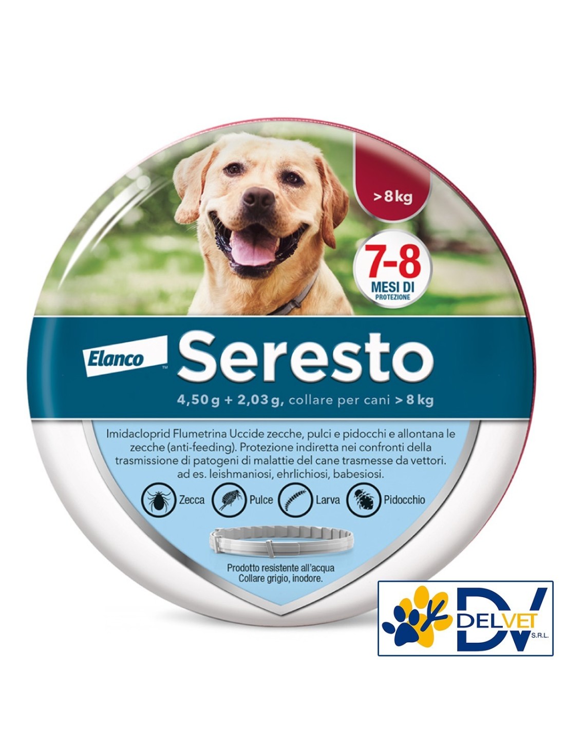 Elanco - SERESTO COLLARE CANE OLTRE 8 KG è un collare antiparassitario innovativo per cane e gatto che protegge contro pulci e zecche fino a 8 mesi con una sola applicazione.