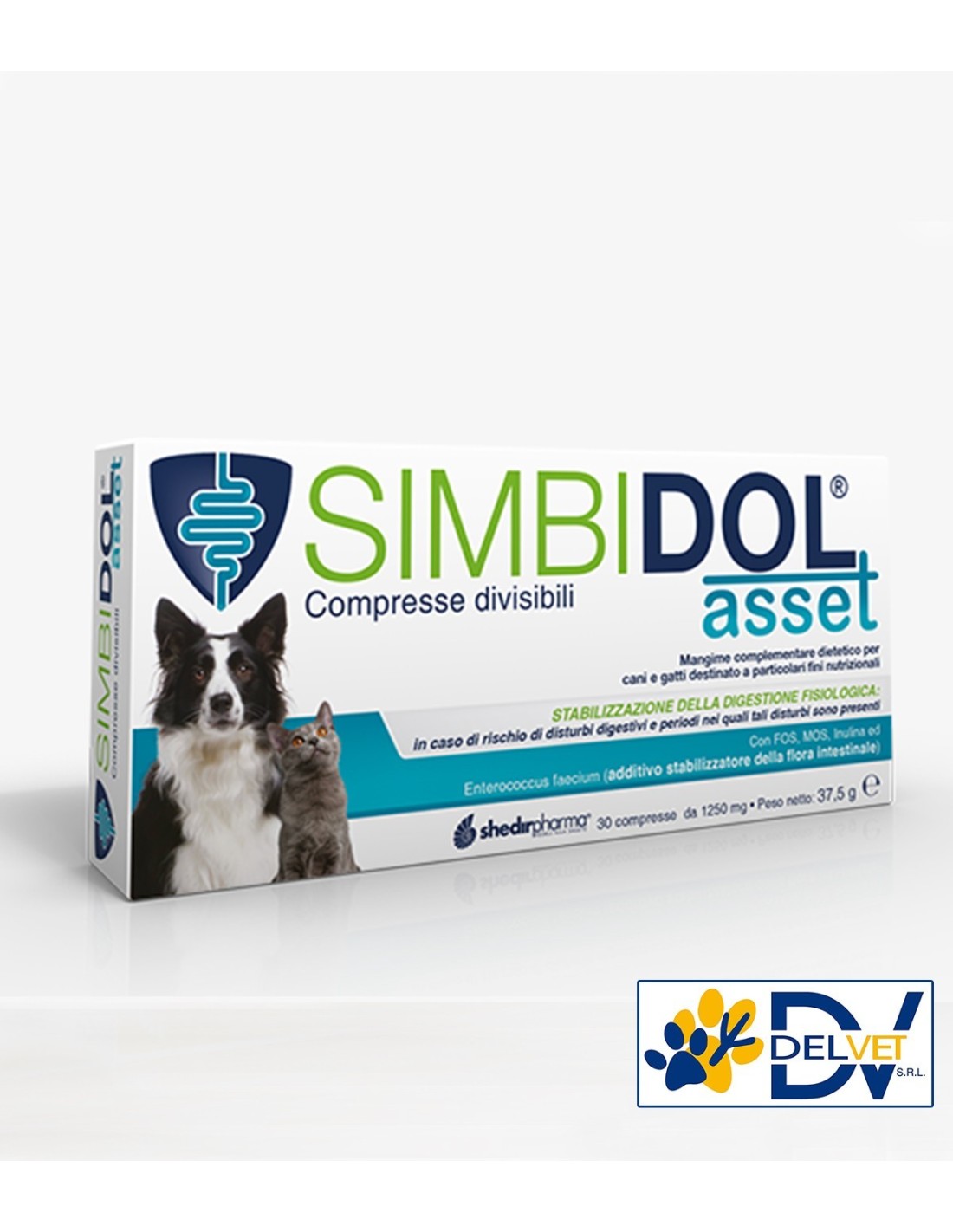 Shedirpharma - SIMBIDOL ASSET 30 COMPRESSE DIVISIBILI, un mangime complementare dietetico per cani e gatti, arricchito con FOS, Inulina e MOS, garantisce una digestione fisiologica equilibrata e previene disturbi digestivi.