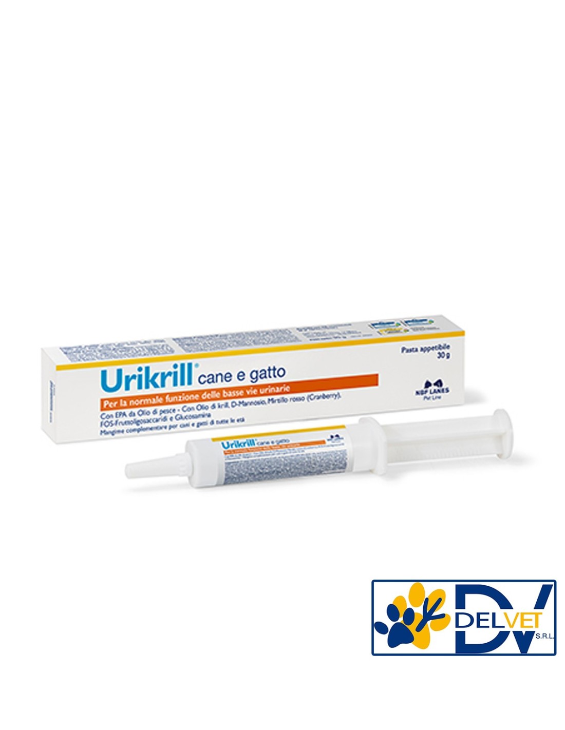 NBF Lanes - URIKRILL PASTA CANE GATTO 30 GR con EPA da olio di pesce, D-mannosio, mirtillo rosso, FOS-fruttoligosaccaridi e glucosamina, è indicato per la normale funzione delle vie urinarie nel gatto e nel cane di piccola taglia, favorendo il fisiologico benessere dell’urobioma.
