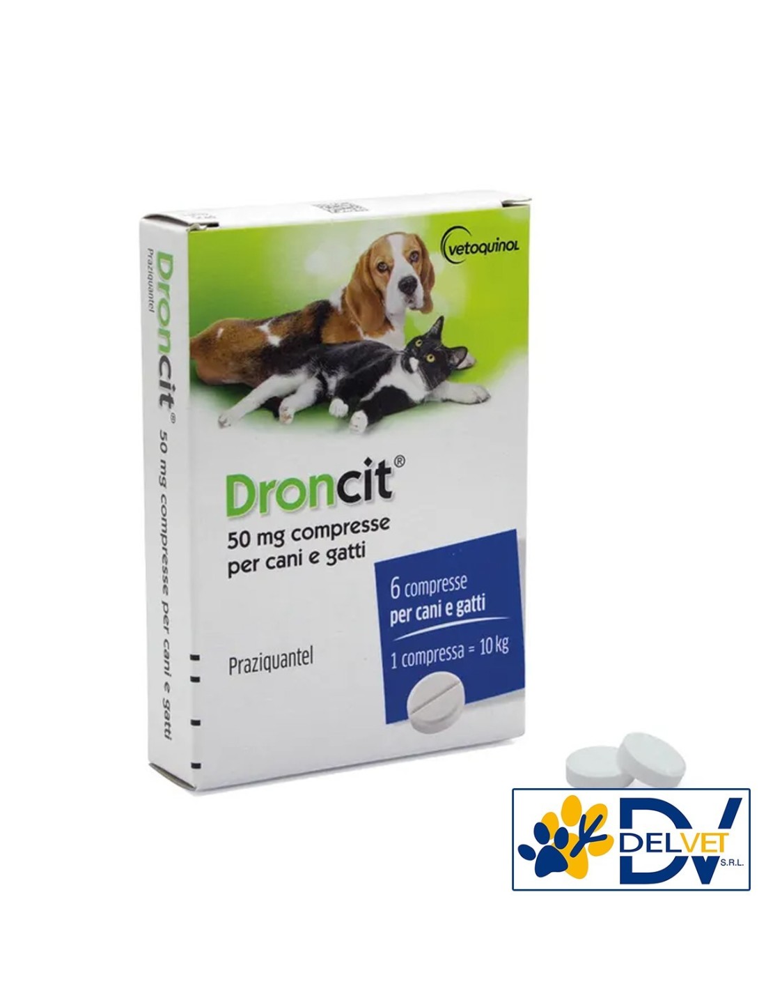 Droncit è un medicinale veterinario a base del principio attivo Praziquantel, appartenente alla categoria degli Antielmintici e nello specifico Derivati chinolinici e sostanze correlate. E' commercializzato in Italia dall'azienda Vétoquinol Italia S.r.l..