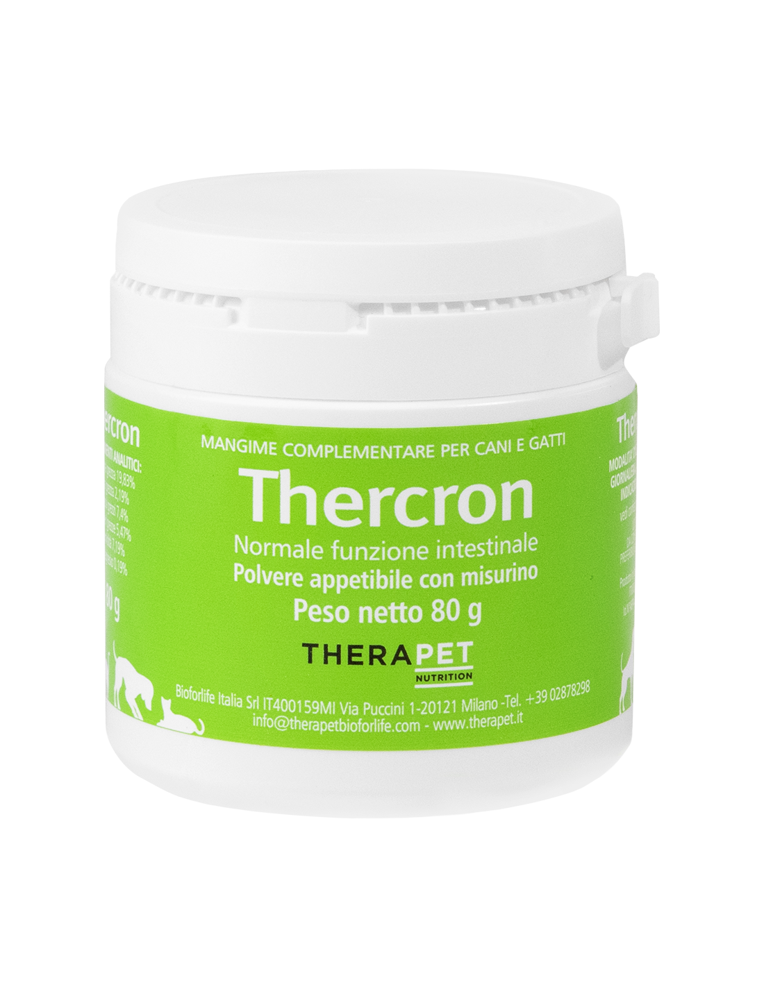 THERCRON GATTO è un mangime complementare in pasta appetibile formulato per favorire il normale benessere intestinale nel gatto di ogni età. Siringa calibrata da 30 ml.