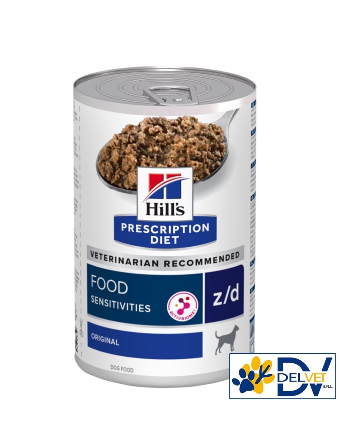 HILL'S Z/D FOOD SENSITIVE CANE 370 GR UMIDO è un alimento dietetico completo per la riduzione degli ingredienti e delle intolleranze ai nutrienti nei cani adulti.