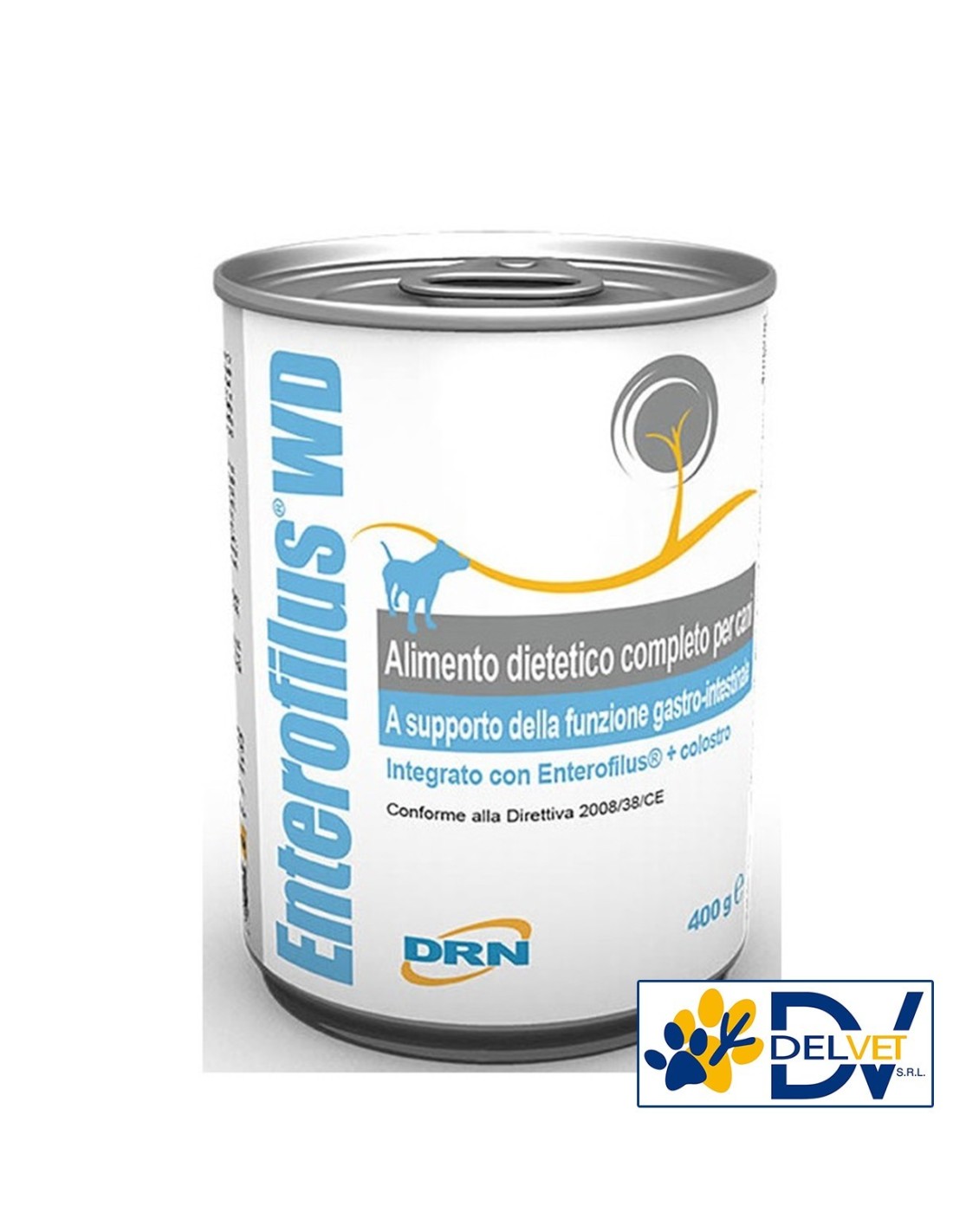 Drn - ENTEROFILUS WET DIET 400 GR è un alimento dietetico completo per cani, destinato a ridurre il rischio dei disturbi acuti dell’assorbimento intestinale durante le diarree acute e i periodi di convalescenza successivi.