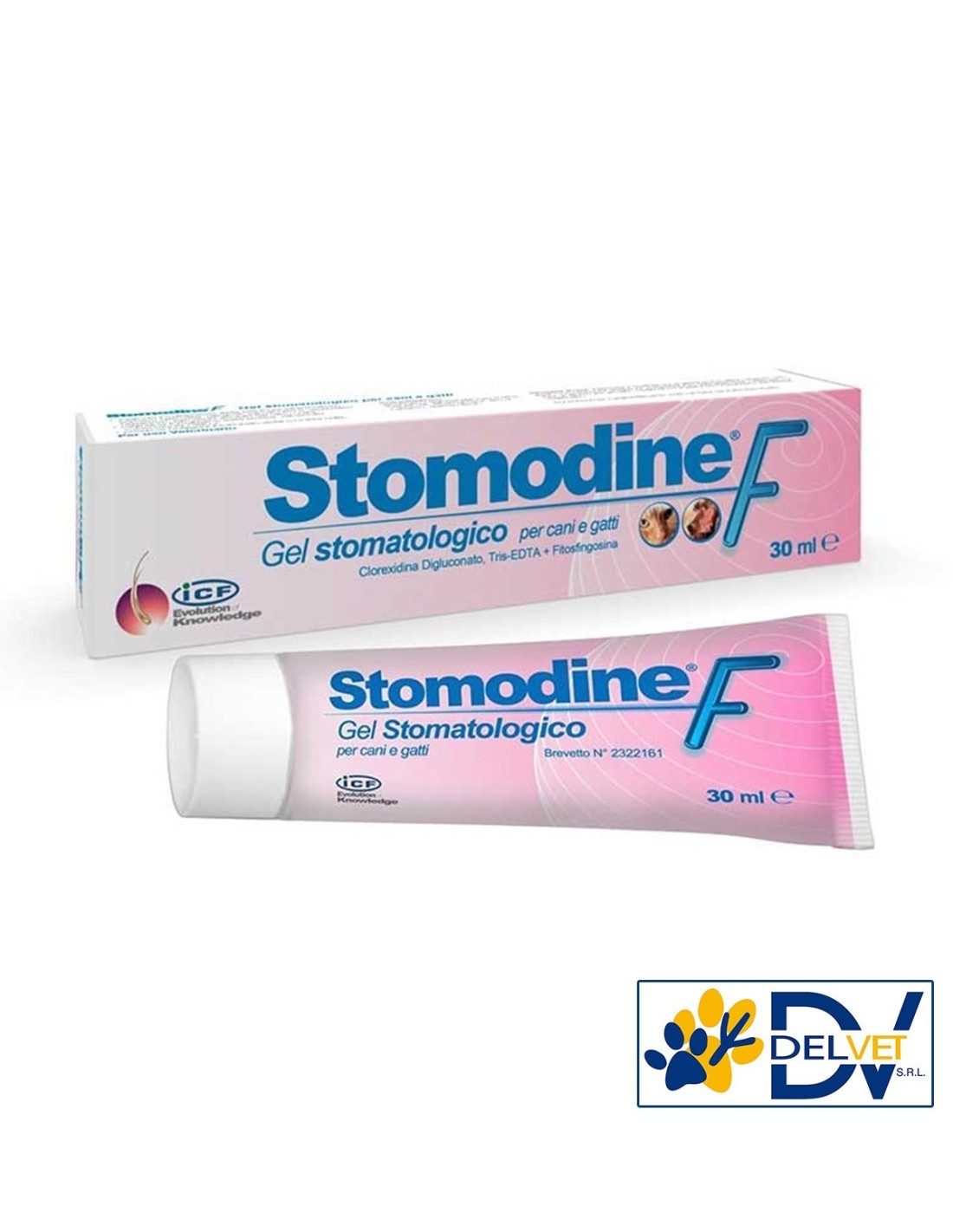 ICF - STOMODINE F 30 ML è un gel stomatologico per cani e gatti con clorexidina digluconato 0,07%, Tris-EDTA, Fitosfingosina.
